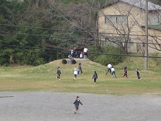 昼休み気温の上昇とともに、運動場で遊ぶ子どもたち!