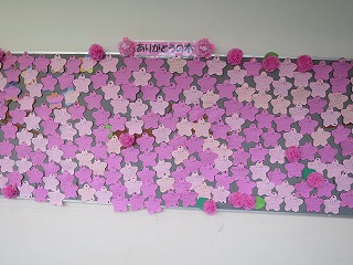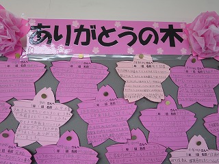 一人一人がカードに「ありがとう」の気持ちを書き大きな木となりました。