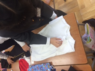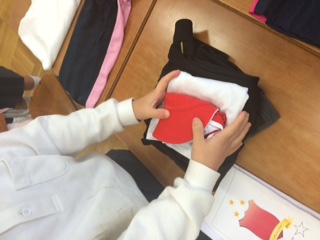いろいろなたたみ方があり、友達のたたみ方を真剣に見入る姿も見られました。
