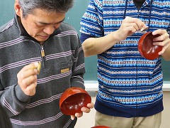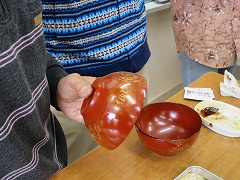 練習用の板とは違い、椀は固く曲がっているので大変です。