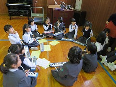3グループに分かれて リコーダーで『雨の公園』を演奏しました。