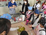 下校の時、大きなスイートポテトの塊を嬉しそうに持って帰る子どもたち。