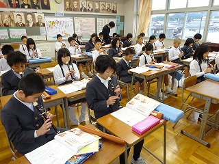 26日(水)14:25から行われる全校集会発表に向けて練習している一年生!