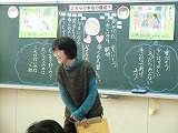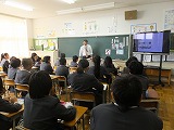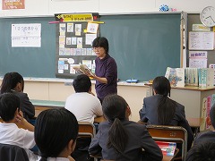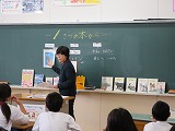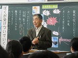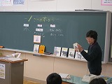 朝、倉田先生に来ていただき、読書のおもしろさを教えていただきました。
