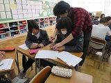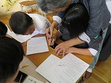 5年生も、一生懸命に4年生に教える姿が見ることができます。