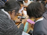 初めて持ったノミに戸惑いながらも、子どもたちは真剣に取り組んでいました。