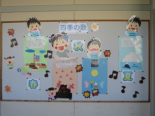 朝の会の中で、今月の歌を元気よく歌い、その後今月の詩をみんなで朗読します。