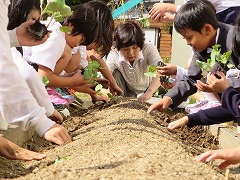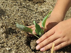自分の大切な苗を、丁寧に植える子どもたち。