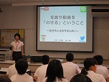 ICT支援員の堀井さんに来ていただいて、ネットに「写真」や「動画」を「のせる」ということについて話してもらいました。