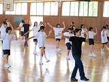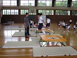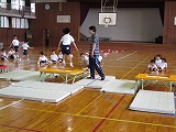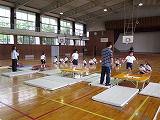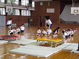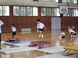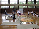 2015年7月8日 11時23分輪島市教育委員会から、吉村さんと西川さんに来ていただき、一年生がトランポリンの指導を受けました。