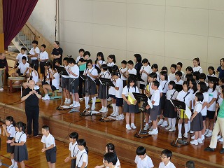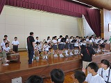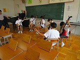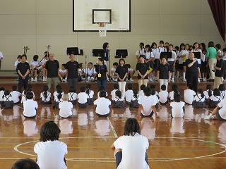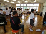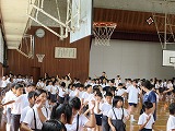 2015年7月6日 15時08分昼休み、お囃子練習(4年~6年)と踊りの練習(6年)に頑張ってきました。