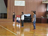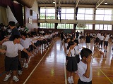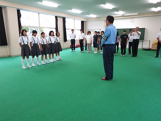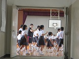 6年生が円の中心に集まり、1年生から5年生の見本になり練習をしました。