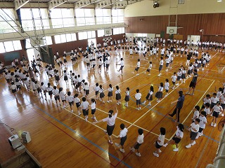 2015年7月2日 18時26分三夜踊りの全校練習をしました。