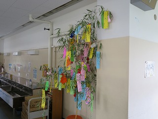 一年教室前に七夕飾りがありました。