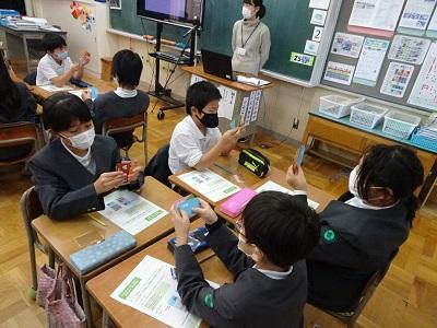 「LINEみらい財団」の方を講師として、初めてのオンライン環境での授業でしたが、児童は講師の方の質問に対して、グループで活発に話したり、挙手して発表したりと、密度の濃い時間を過ごしました。