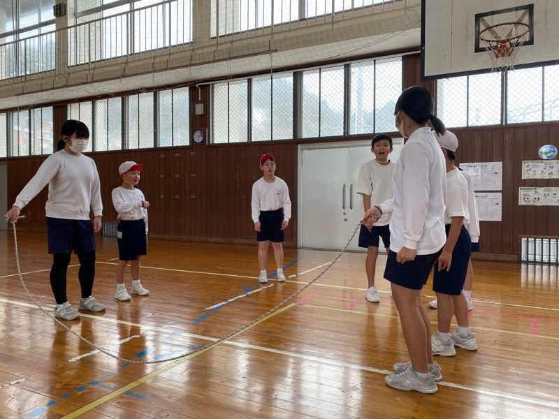 1年生は、この1時間で大成長!!授業の開始では、34回、31回だったのが、6年生と練習したあとにもう一度チャレンジしてみると…45回、49回!!!!!