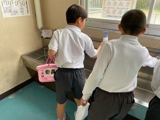 委員会では,手洗い場にある石鹸の補充の他に喚起やマスクを正しくつける呼びかけをしています。