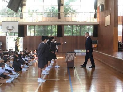 2020年10月13日 19時35分後期委員会委員長、学級委員の任命式が行われました。よりよい鳳至小学校目指して頑張ります。