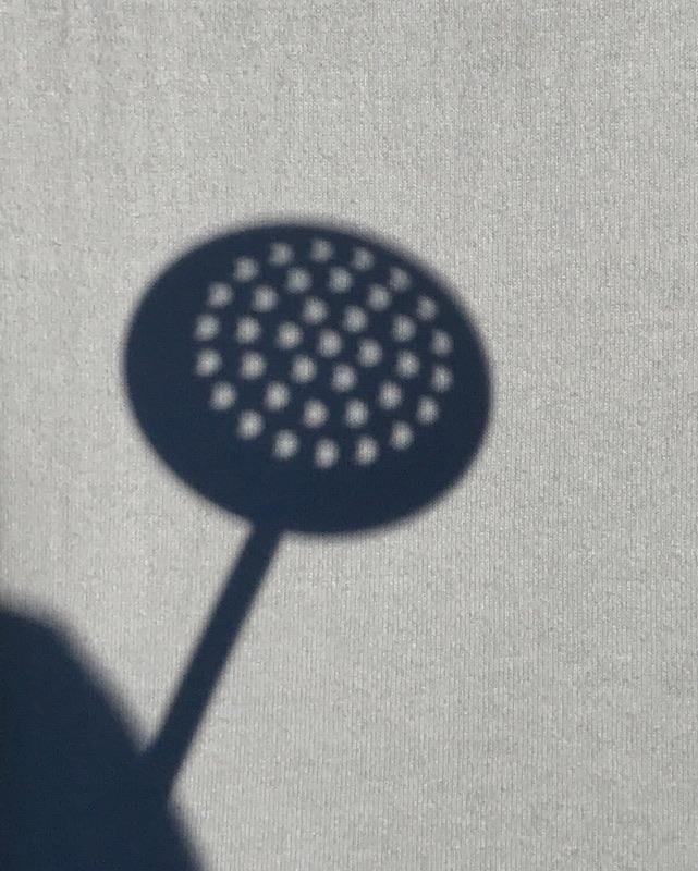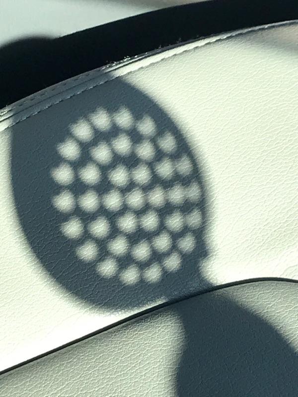 用意した遮光板が全て借りてもらえたので、穴あきおたまと、穴を開けた厚紙からもれる光で間接的に観察しました。