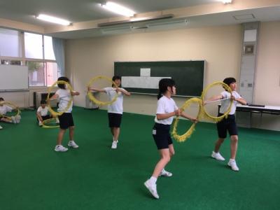 フラッグは6年生。振り付けを自分たちで考えています。アイデアを出し合いながらもまだまだ悩み中!今日も自主練をしている子がいました。