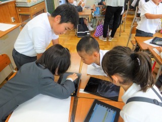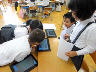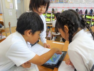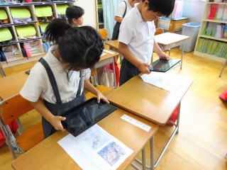 拡大、縮小…子どもたちはタブレットやスマホで使っている技ですから身近な題材です。
