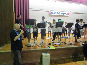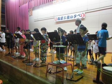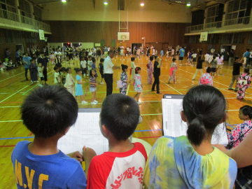 2019年8月14日 13時09分 8月8日(木)親子三夜の夕べが鳳至小学校体育館で行われました。暑い日となりましたが、お囃子、歌、踊りの皆さんは元気にがんばりました。三夜踊り保存会の皆さんのご協力で、伝統を受け継ぐことができました。