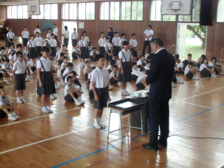 2019年7月19日 14時56分 7月19日に終業式が行われました。はじめに鳳至小学校オリンピックの表彰を行い、校歌斉唱、校長先生のお話、夏休みの生活についてのお話がありました。6年生がとても静かにしっかり並んでくれました。おかげでしまった終業式となりました。ありがとう6年生!