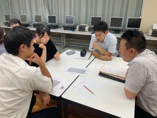 2019年8月1日 15時37分 今日は若プロという研修でプログラム学習について学びました。講師は上平先生です。講義とパソコンでの実技の研修でした。先生たちもがんばっています。