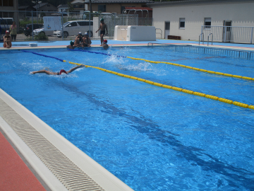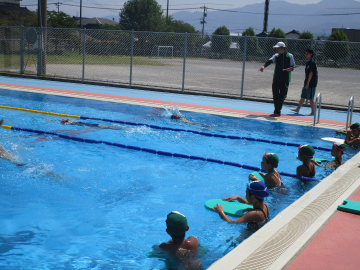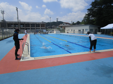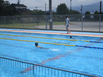 2019年8月5日 13時22分 市の水泳大会に出場する選手たちが、練習に励んでいます。1日にはサンプルルで練習をしてきました。暑い中ですが、自分のベストを出せるようにがんばりましょう。
