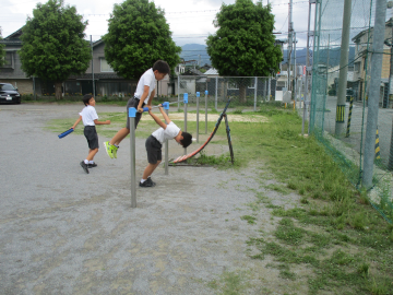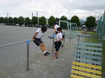 2019年7月1日 13時55分 長休み、昼休みになると4年生が鉄棒の道具を職員室まで借りに来ます。そして鉄棒の練習を夢中になって始めます。ずいぶんと上達しているようです。がんばっています、4年生!