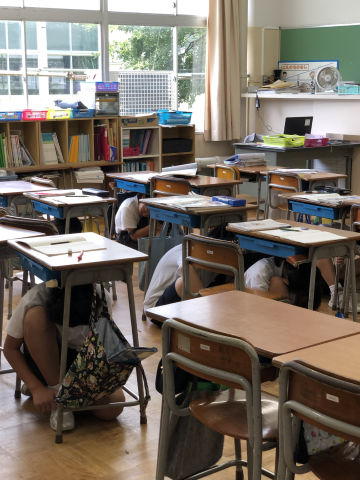 2019年7月10日 11時42分 県民一斉防災訓練が10日11時より実施されました。もし実際に起きたときも「低く、頭を守り、動かない」ができるようにしましょう。