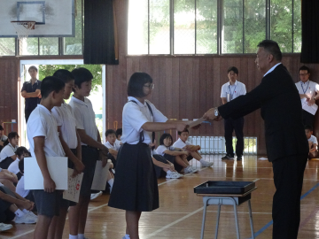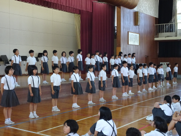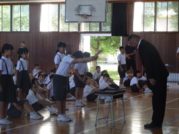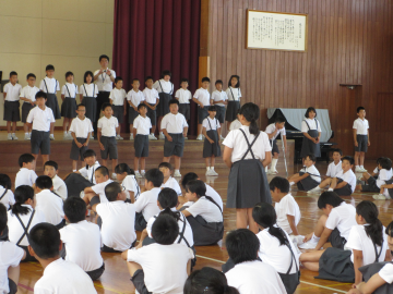 2019年7月12日 14時40分 10日に全校集会があり、表彰式と4年生の学年発表がありました。6年生のリーダー一シップで静かに並ぶことができたり、また大きな声で返事ができたりと素晴らしい全校集会となりました。4年生もとても大きな声で堂々とした発表を見せてくれました。低学年の見本となる立派な発表でした。