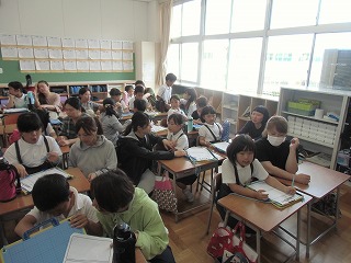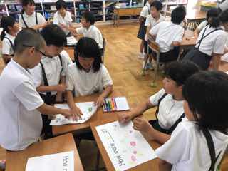 グループでの交流では、どのグループも笑顔で質問したり答えたりして楽しんで学習していました。