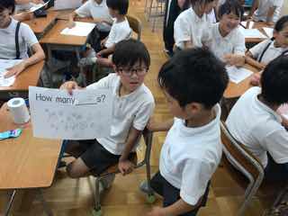活動のはじめのgreetingでは、2年生に「How are you ?」と聞くと、指名した4人全員が「I'm happy!」と答えていました。