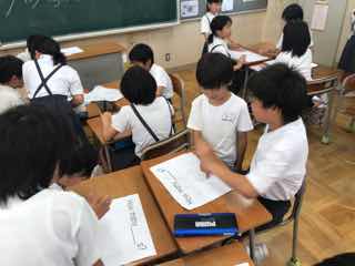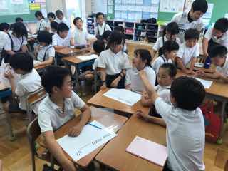 メインのactivityでは、お手本として4年生にモデルを募集したところ、たくさんの手があがり、高学年として良い姿を示すことができました。