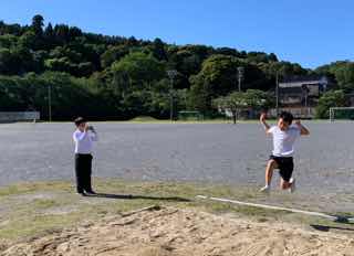 今日は、5・6年生が希望者が、走り幅跳びとジャベリックボール投げの2種目の練習をしました。