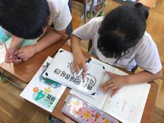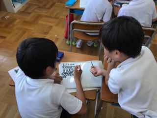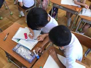 どのペアも頭をすり寄せ、指し示すところを食い入るように見ながら学び合っていました。