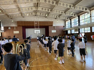 2年生は5時間で終わるので、6限目に5、6年生の鼓笛を見に行きました。