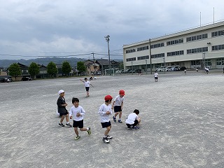 今日は昼休みに、鬼ごっことドッジボールをしました。