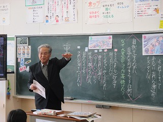 今日は1組と2組の道徳の時間で、「自然愛護」の勉強をしました。
