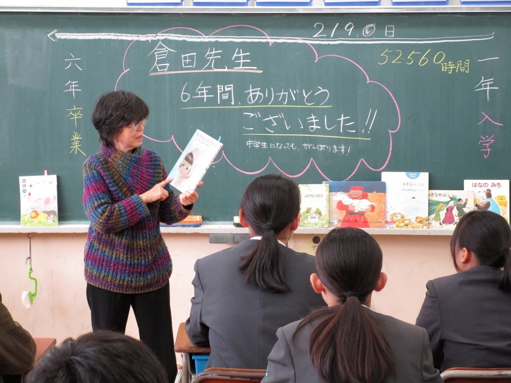 2019年3月6日 17時51分本日、6年1組は、朝読書の時間に、ボランティアの倉田先生から読み聞かせをしていただきました。卒業前の最後の読み聞かせということで、心のこもったロング・バージョンでした。1年生から6年生までの、国語の教科書にのっている物語を振り返りました。「なつかし~。」「あ、そんなんあったなあ!」「〇〇先生と勉強した!」と記憶がよみがえってきました。鳳至小学校は本好きな児童が多いと思います。