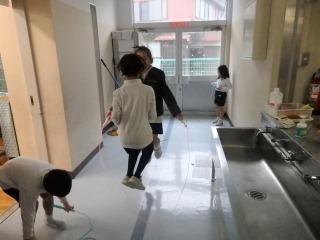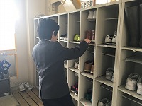 代表委員がかかとの場所にシールを張り直しました。そのシールに合わせてズックをそろえておきましょう。
