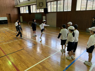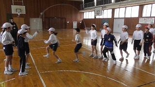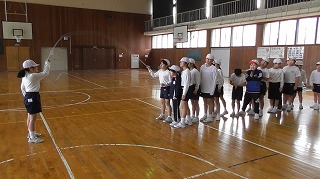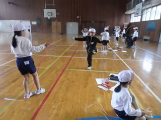 長縄を使った8の字とび、短縄を使った技練習。各学年、目標目指して頑張ります!