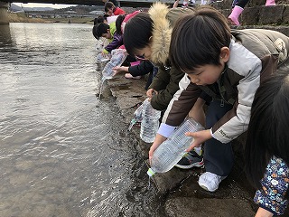 大事そうにペットボトルを抱える姿、声をかけながら川に流す姿、川のヤマメをずっと見送る姿から、児童たちにとって貴重な心の勉強となったことがわかります。