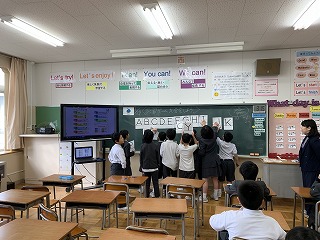 今日の外国語活動では、「Yellow Green チーム」と「Blue チーム」に分かれて