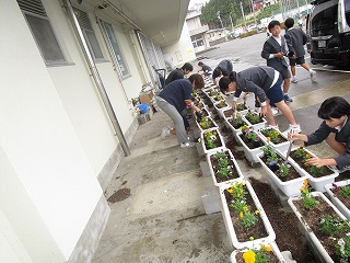 環境委員のみんなの手伝いですぐに花植え終わりました。