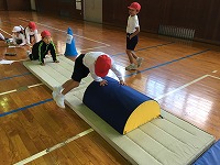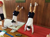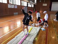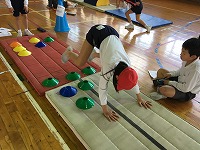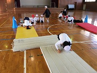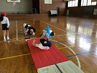 2年生は体育でマット運動をしています。