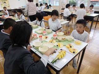 1年生の分のフルーツもお皿にとりわけてくれました。