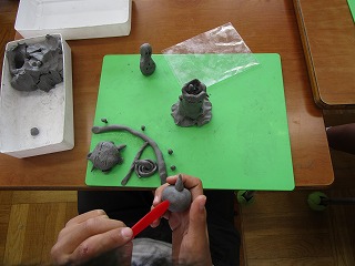 図工の時間、ねん土で「マイタウン」を作りました!