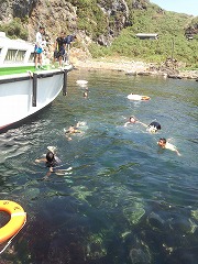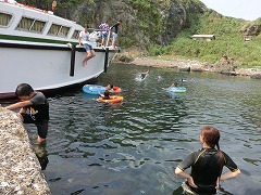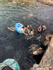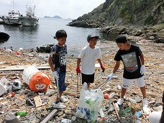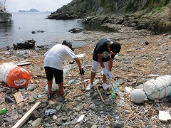 七ツ島に上陸し、海岸の清掃活動を行い、